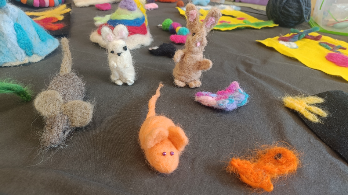 Im Anschluss, von 11:30 bis 12:00 Uhr, öffneten sich die Türen der Schule. Alle Gäste konnten die vielfältigen Ergebnisse der Woche bestaunen. Überall gab es etwas zu entdecken: Es wurde gemalt, gebastelt, gehäkelt, gestickt, genäht und gesungen.