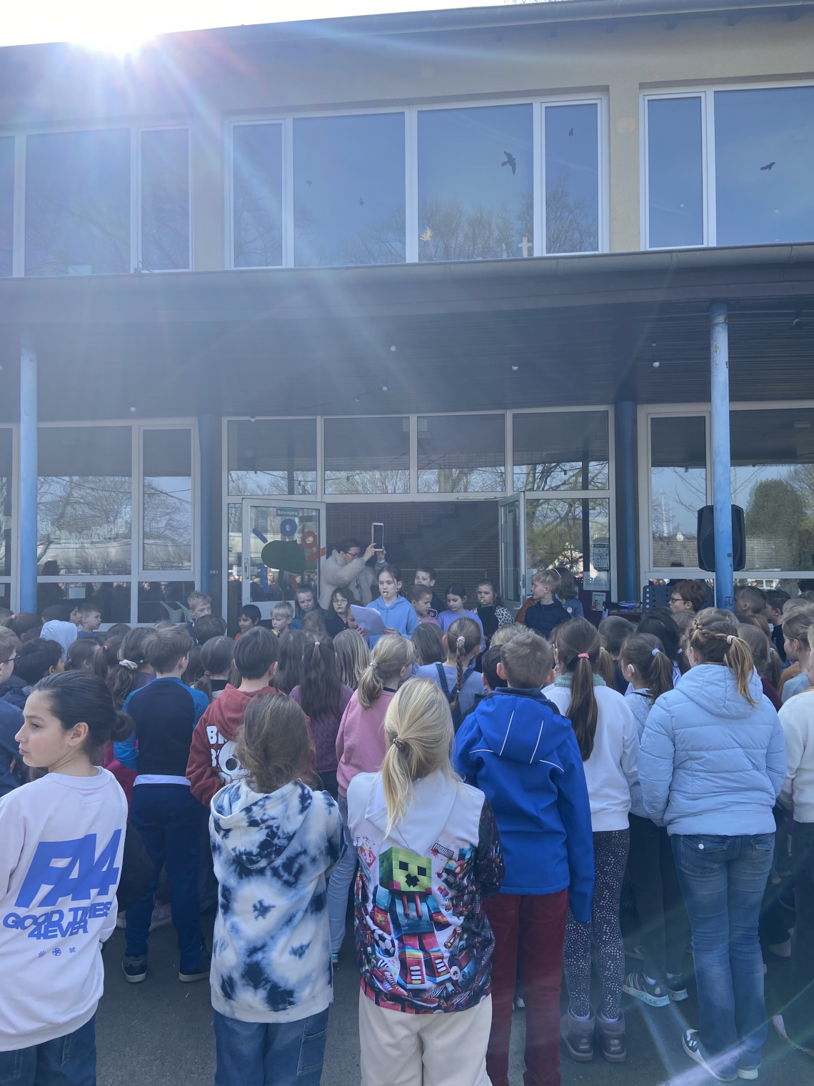 Am Freitag wurde es besonders spannend: In der dritten Stunde bereiteten die Gruppen ihre Präsentationen vor. Um 11 Uhr versammelten sich schließlich alle Beteiligten auf dem Schulhof – auch Eltern, Freunde und Verwandte waren herzlich eingeladen.
