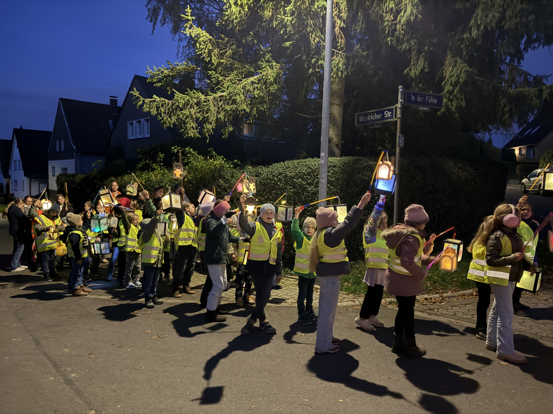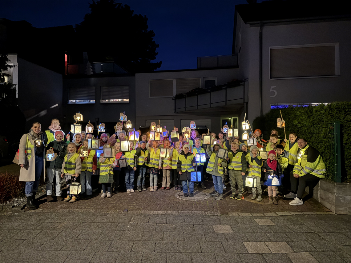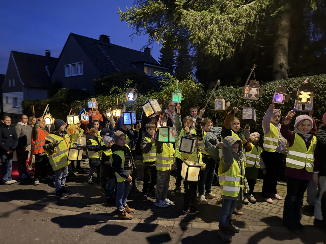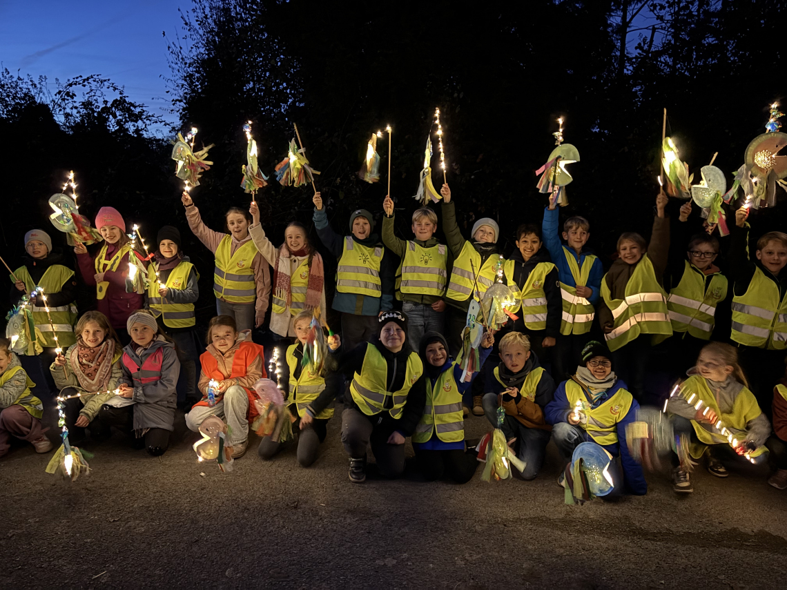 Am vergangenen Mittwoch, dem 12. November, feierte die Lindenschule ihren alljährlichen Sankt-Martins-Umzug. Um 17:20 Uhr trafen sich die Kinder, ausgestattet mit leuchtenden Laternen und auffälligen Warnwesten, an verschiedenen Orten in der Nähe der Schule. Von dort aus zogen sie gemeinsam durch die Straßen, sangen die gut geübten Martinslieder und brachten die Dunkelheit mit ihren strahlenden Laternen zum Leuchten.