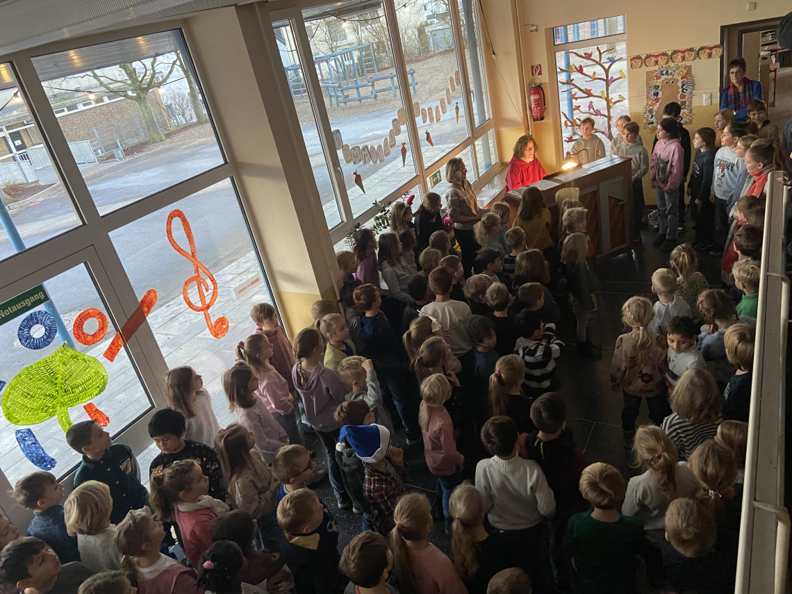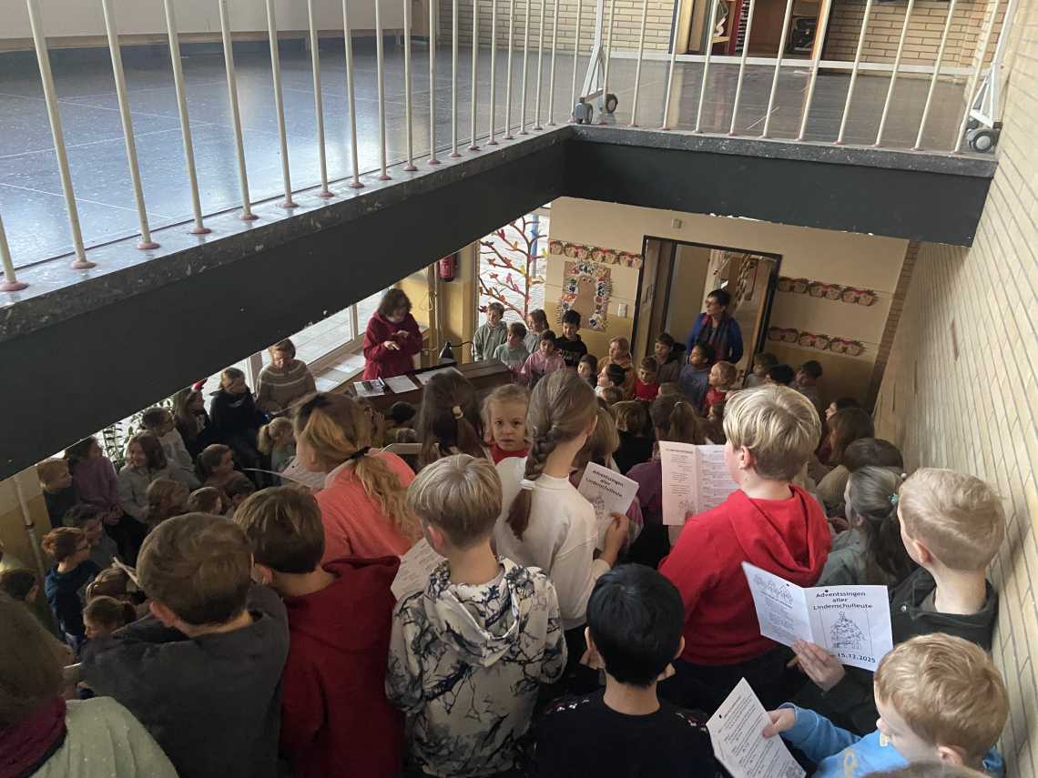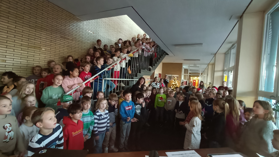 Neben den Liedern trugen einige Kinder auch stimmungsvolle Adventsgedichte vor. Es war ein Moment der Ruhe und Besinnung, der den oft hektischen Schulalltag unterbrach und eine wunderbare Gelegenheit bot, innezuhalten und gemeinsam die Vorfreude auf das bevorstehende Weihnachtsfest zu teilen.